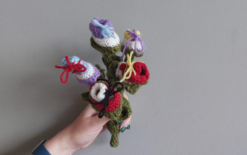 Zo haakte zij voor een hardlooptrainer die ging stoppen geen gewoon boeket bloemen, maar een gehaakt boeket met hardloopschoentjes in plaats van bloemen. Voor een tolk Gebarentaal die zichzelf ‘een held op sokken’ noemde, haakte ze letterlijk een sok in Superman-kleuren, met een rode zool, een blauwe boord, een S-logo op de wreef en zelfs een rode cape aan de kuitkant.
